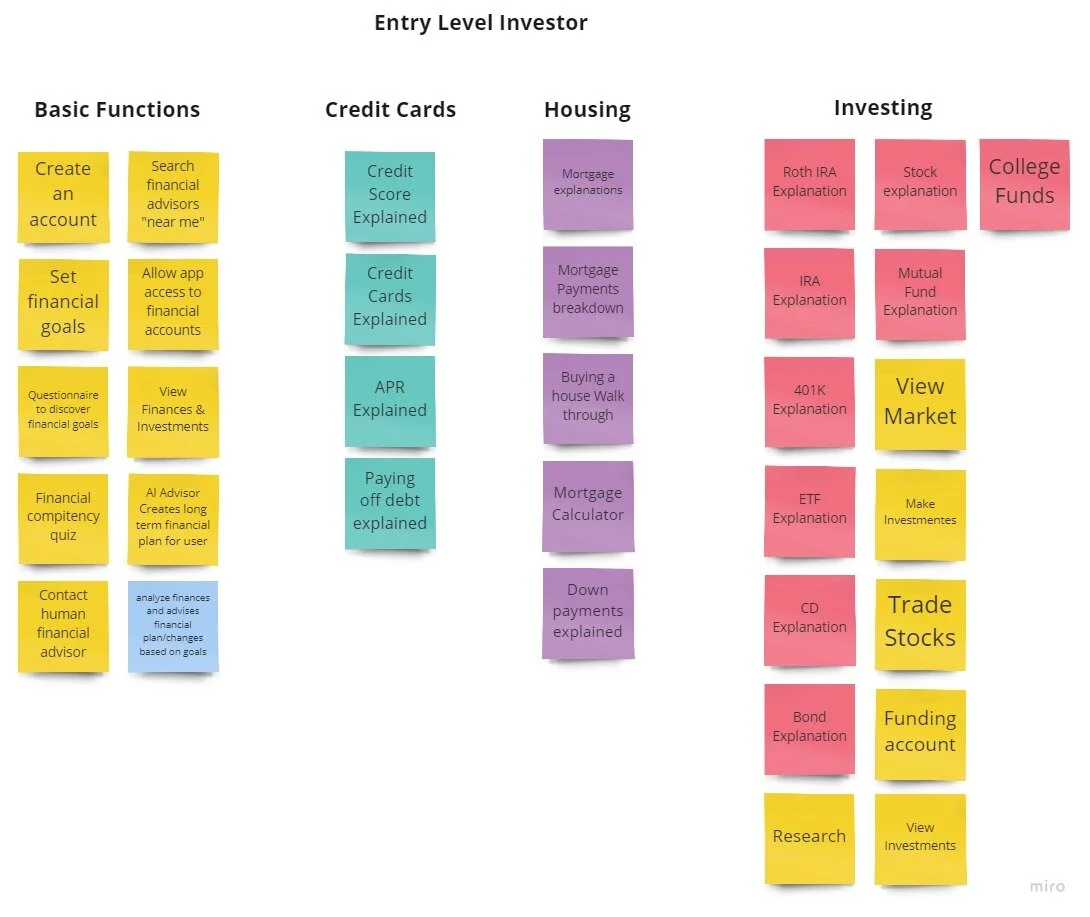 I concluded that their are TONS of investing apps out there, and in the scope of a ten week project, i would need to try and find a unique problem to solve, or else I would get stuck designing yet another investing app.